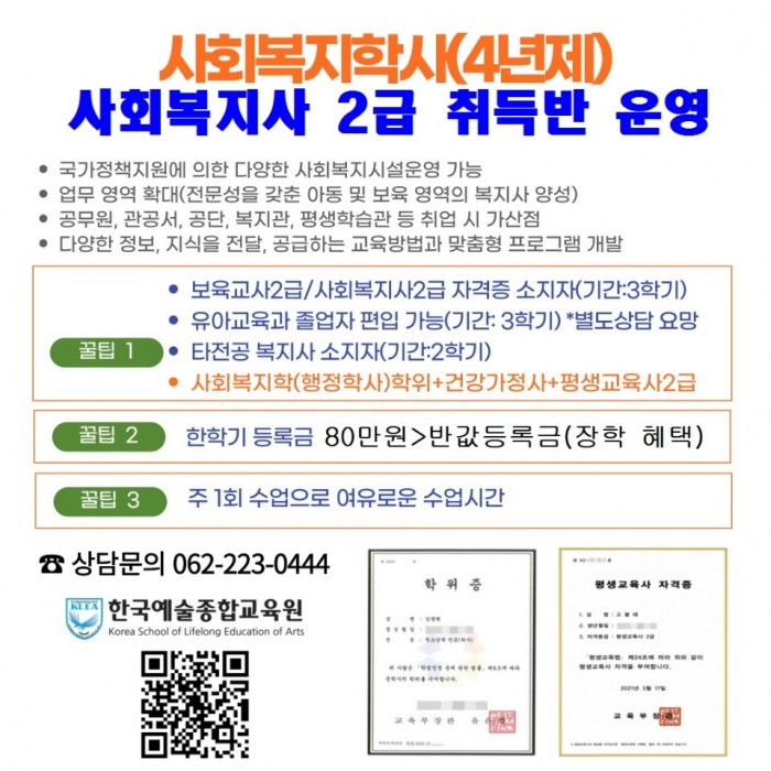 사회복지사 2급&평생교육사 2급&건강가정사 자격 취득 가능
