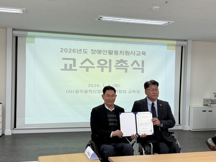 광주광역시장애인총연합회는 지난 1월 6일(화) 오전 11시 30분, 연합회 내 활동지원사 교육장에서 ‘2026년도 장애인활동지원사 교육 교수 위촉식’을 개최했다